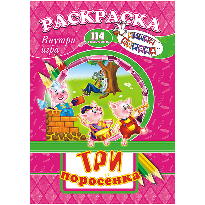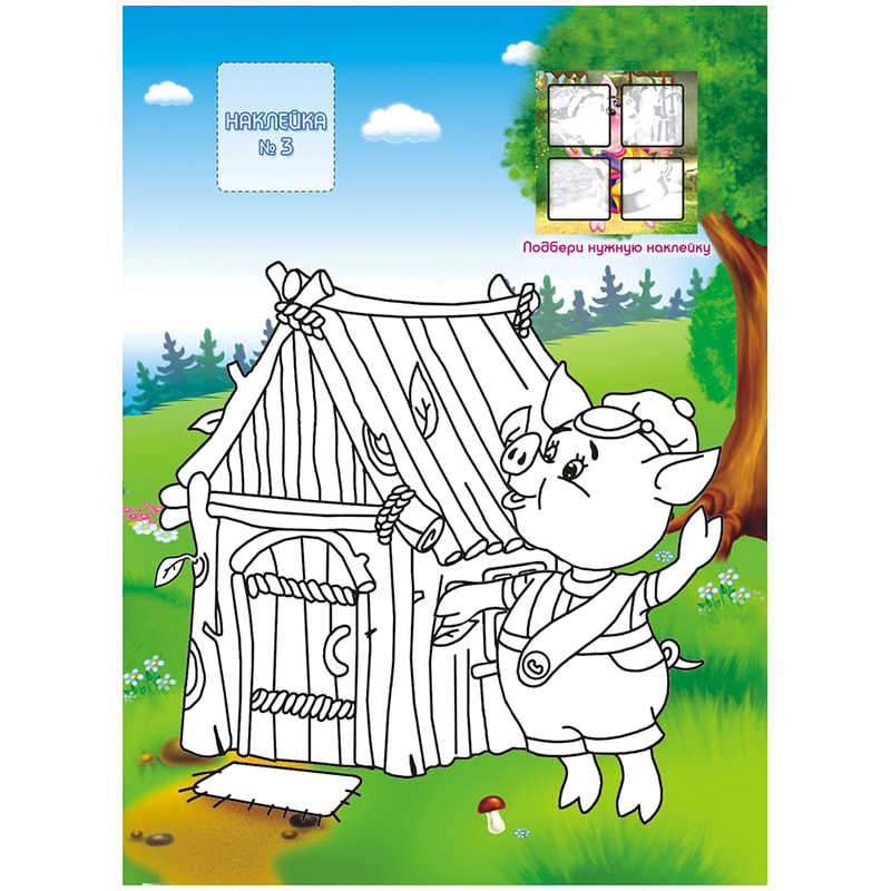 » Раскраска с заданиями А4, ЛиС "Шаг за шагом. Три поросенка", 16стр., с наклейками и игрой